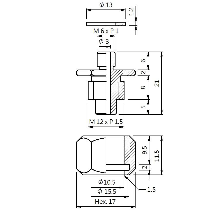 真空螺絲-外牙X型 螺牙 M6 - 盤面 17H - 高度 21 (A6X-143)