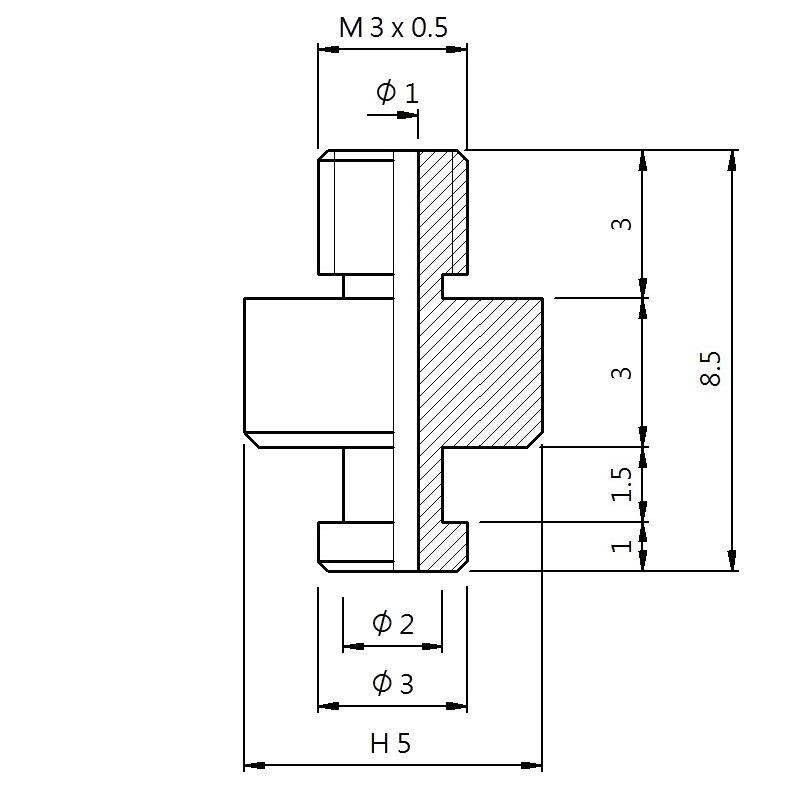 真空螺絲-外牙B型 螺牙 M3 - 盤面 3 - 高度 8.5 (A3B-123)