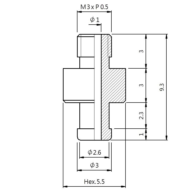 真空螺絲-外牙B型 螺牙 M3 - 盤面 3 - 高度 9.3 (A3B-128)