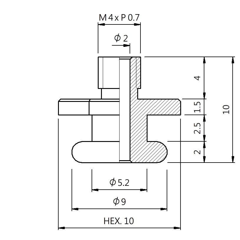 真空螺絲-外牙B型 螺牙 M4 - 盤面 9 - 高度 10 (A4B-163)