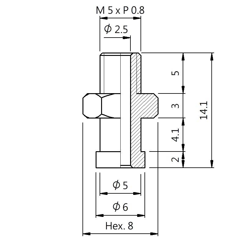 真空螺絲-外牙B型 螺牙 M5 - 盤面 6 - 高度 14.1 (A5B-002)