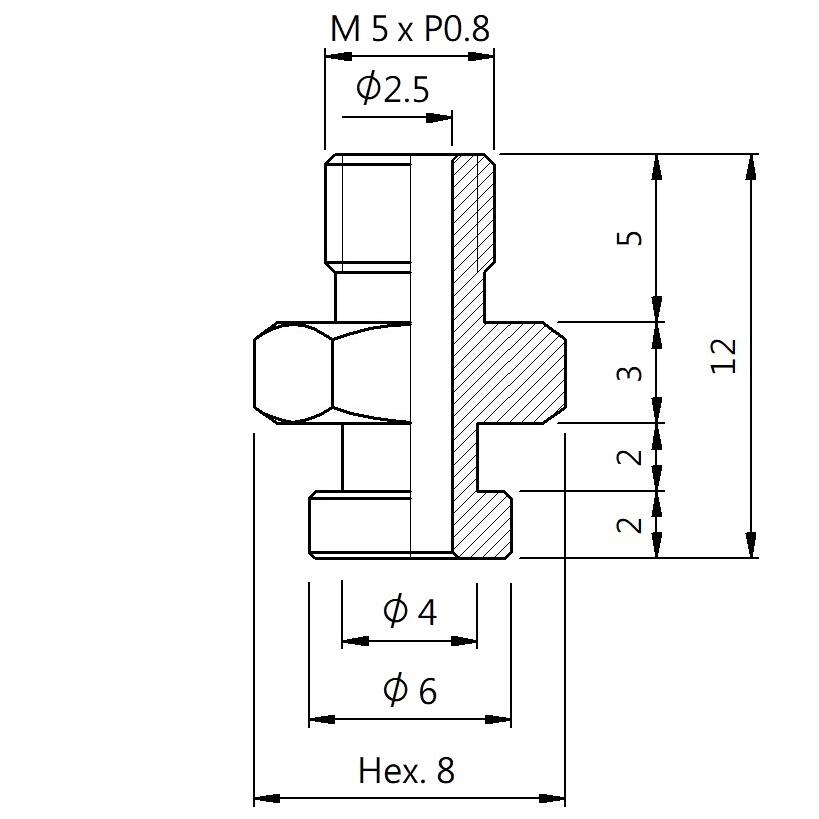 真空螺絲-外牙B型 螺牙 M5 - 盤面 6 - 高度 12 (A5B-018)