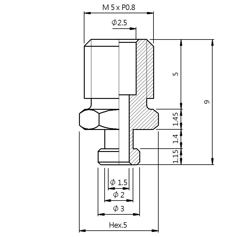 真空螺絲-外牙B型 螺牙 M5 - 盤面 3 - 高度 9 (A5B-066)