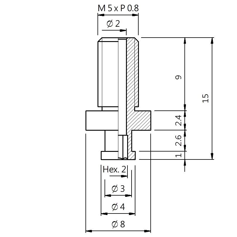真空螺絲-外牙B型 螺牙 M5 - 盤面 4 - 高度 15 (A5B-083)