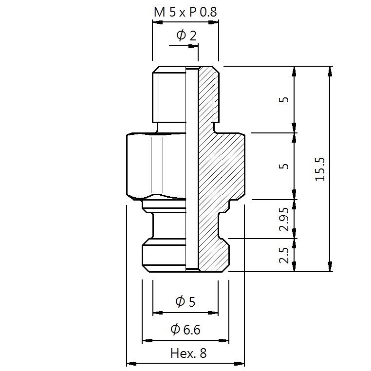 真空螺絲-外牙B型 螺牙 M5 - 盤面 6.6 - 高度 15.5 (A5B-093)