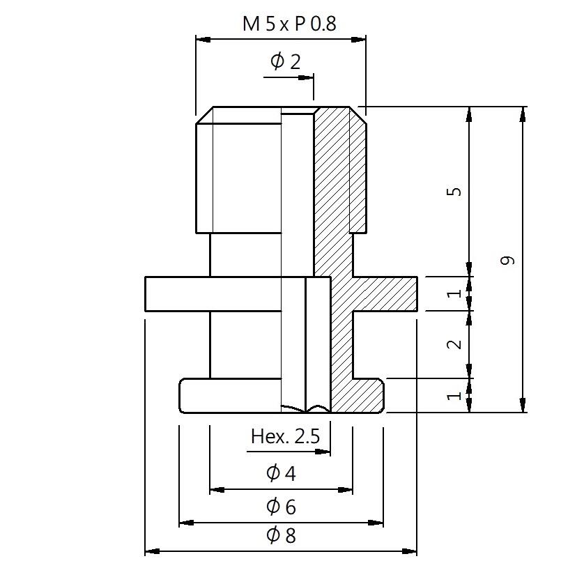 真空螺絲-外牙B型 螺牙 M5 - 盤面 6 - 高度 9 (A5B-114)