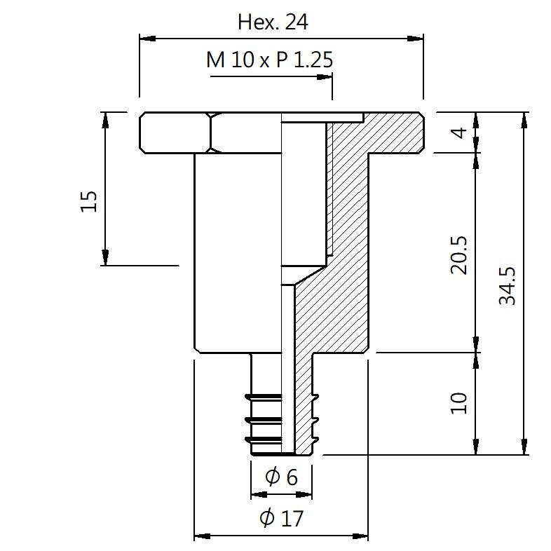 真空螺絲-內牙Y型 螺牙 M10 - 盤面 6 - 高度 34.5 (B10Y-136)