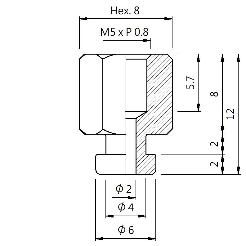 真空螺絲-內牙B型 螺牙 M5 - 盤面 6 - 高度 12 (B5B-057)
