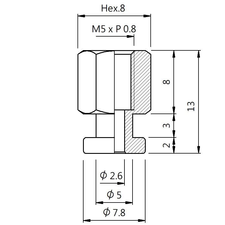 真空螺絲-內牙B型 螺牙 M5 - 盤面 7.8 - 高度 13 (B5B-070)