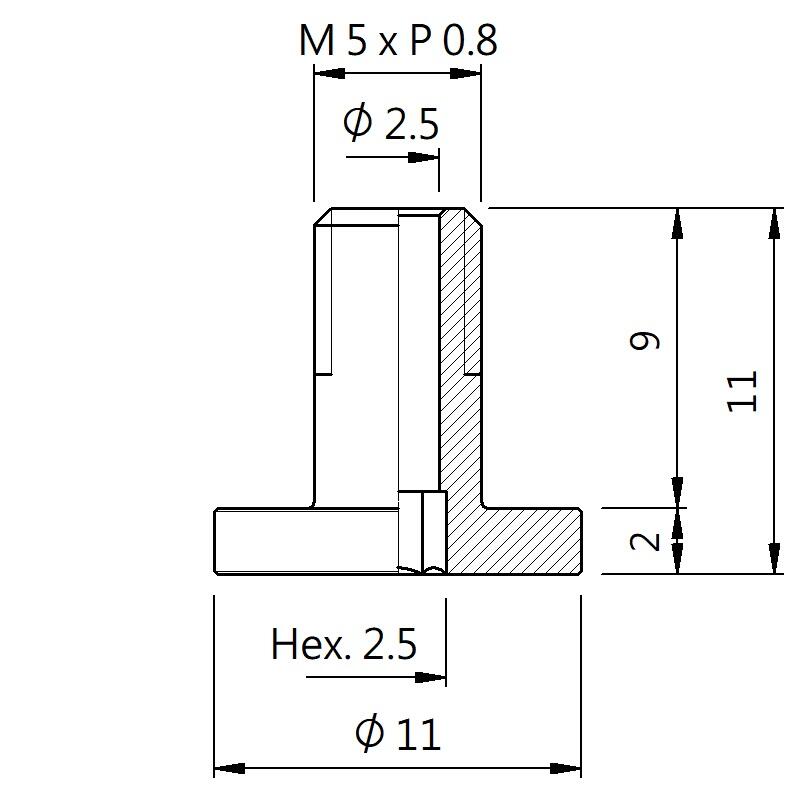 真空螺絲-外牙T型 螺牙 M5 - 盤面 11 - 高度 11 (A5T-039)