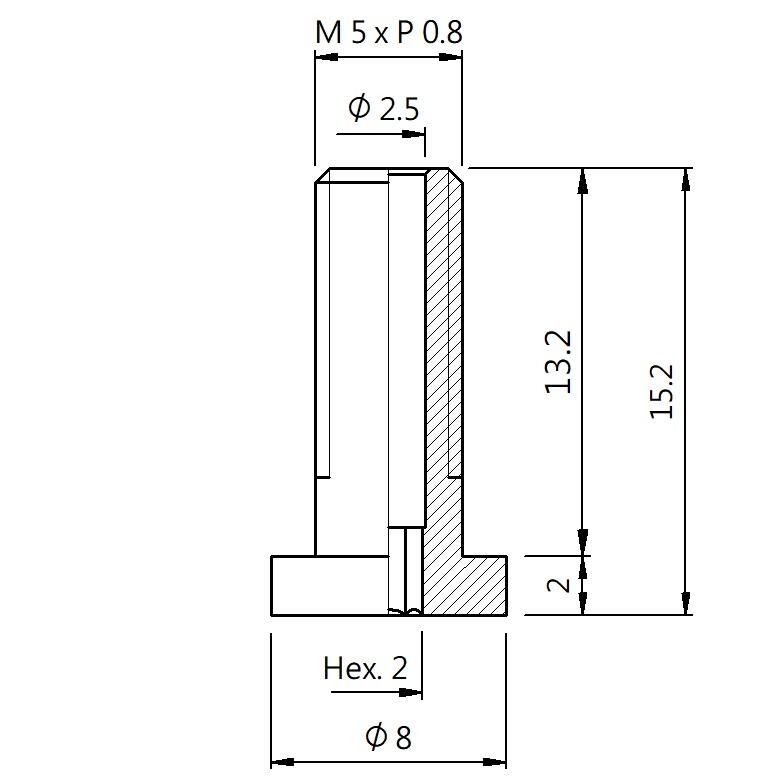 真空螺絲-外牙T型 螺牙 M5 - 盤面 8 - 高度 15.2 (A5T-058)