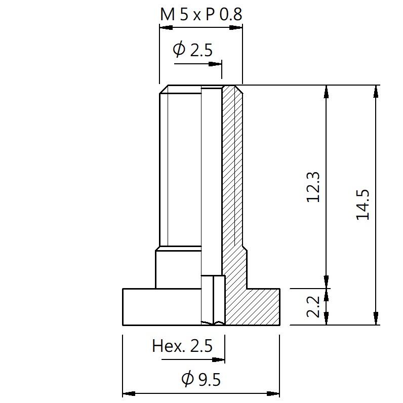 真空螺絲-外牙T型 螺牙 M5 - 盤面 9.5 - 高度 14.5 (A5T-086)