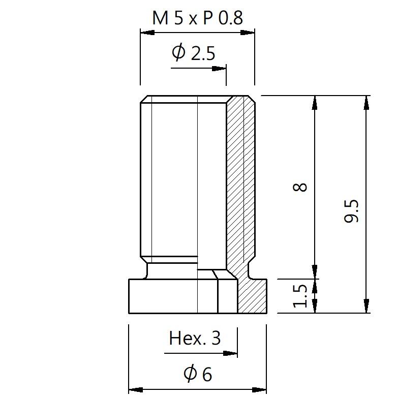 真空螺絲-外牙T型 螺牙 M5 - 盤面 6 - 高度 9.5 (A5T-139)