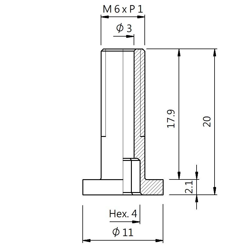 真空螺絲-外牙T型 螺牙 M6 - 盤面 11 - 高度 20 (A6T-062)