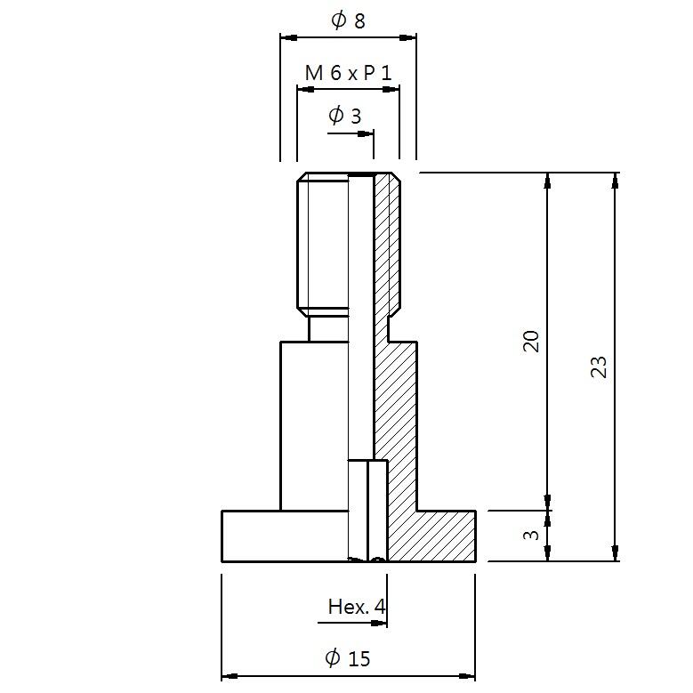 真空螺絲-外牙T型 螺牙 M6 - 盤面 15 - 高度 23 (A6T-089)