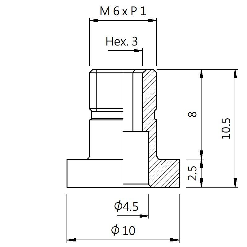 真空螺絲-外牙T型 螺牙 M6 - 盤面 10 - 高度 10.5 (A6T-158)