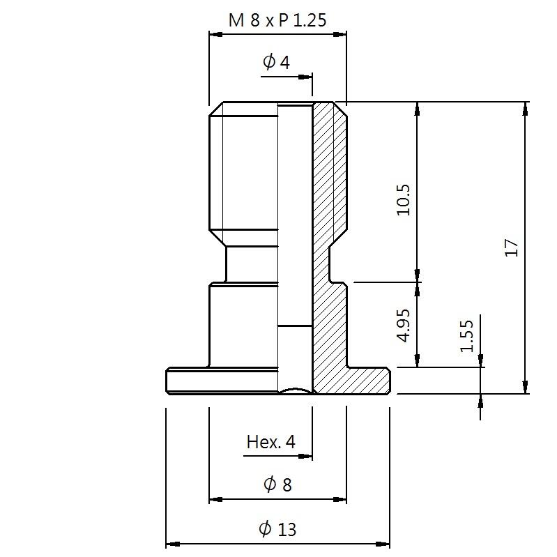 真空螺絲-外牙T型 螺牙 M8 - 盤面 13 - 高度 17 (A8T-092)