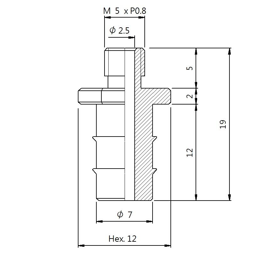 真空螺絲-外牙Y型 螺牙 M5 - 盤面 7 - 高度 19 (A5Y-121)