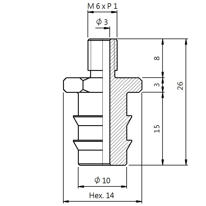 真空螺絲-外牙Y型 螺牙 M6 - 盤面 10 - 高度 26 (A6Y-145)
