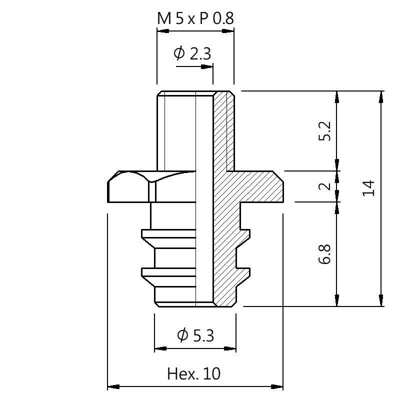 真空螺絲-外牙V型 螺牙 M5 - 盤面 5.3 - 高度 14 (A5V-014)