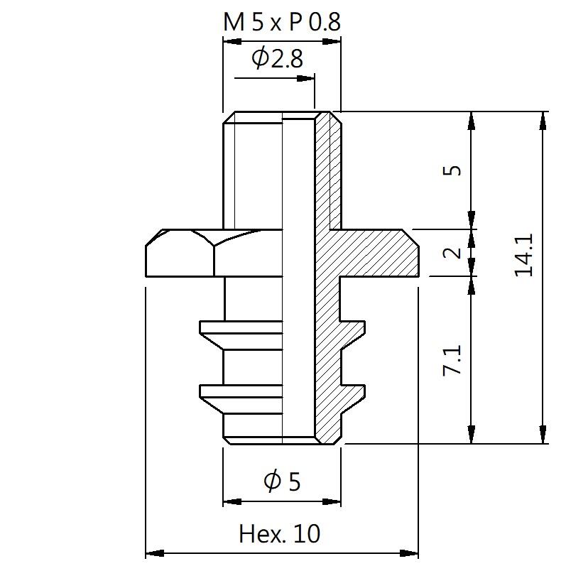 真空螺絲-外牙V型 螺牙 M5 - 盤面 5 - 高度 14.1 (A5V-032)