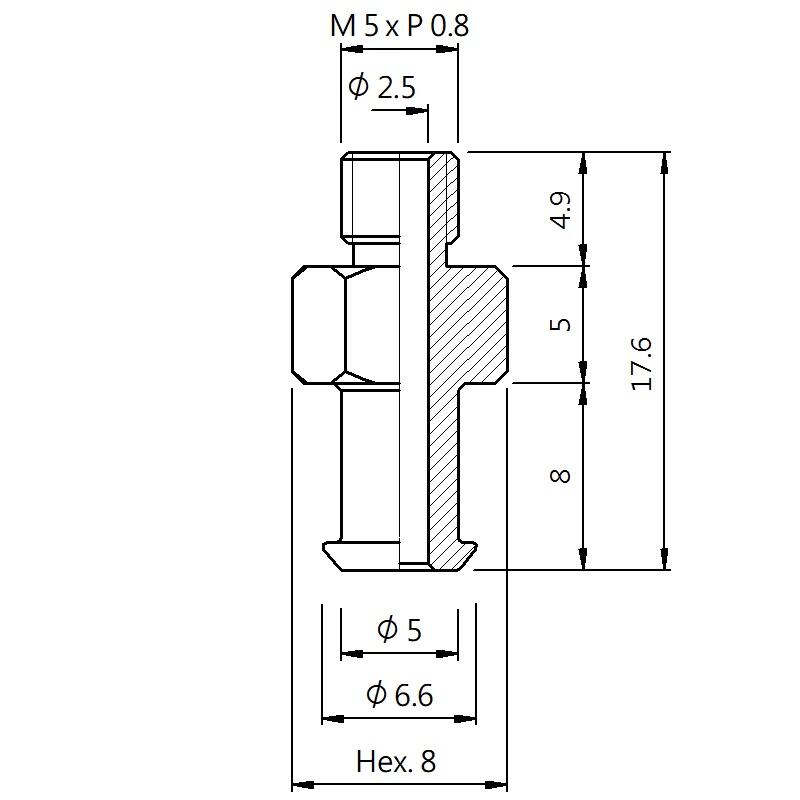 真空螺絲-外牙V型 螺牙 M5 - 盤面 6.6 - 高度 17.6 (A5V-065)