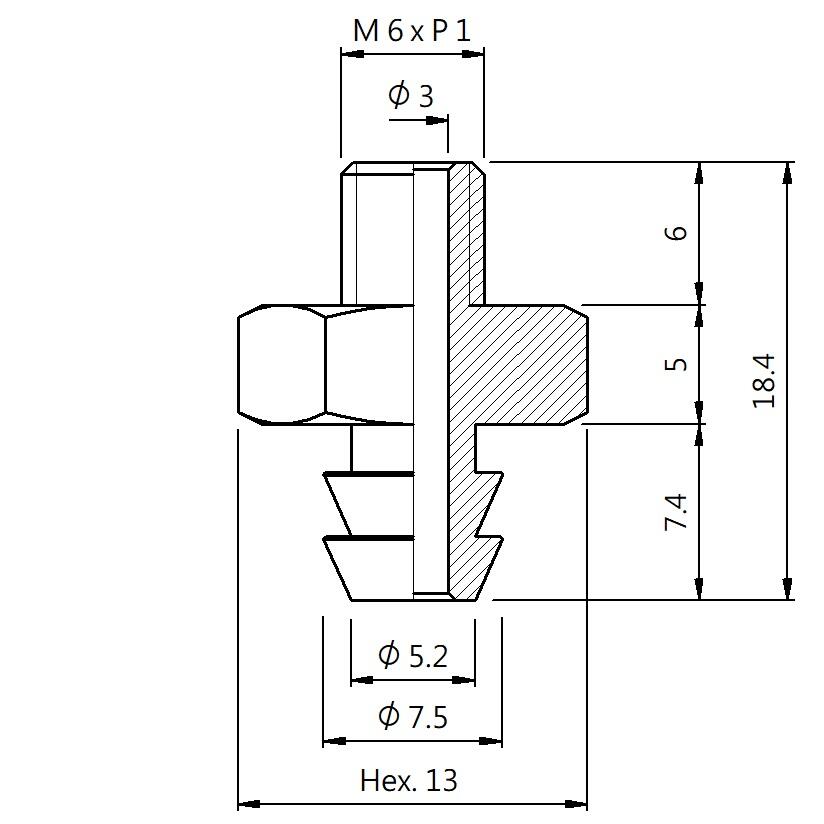 真空螺絲-外牙V型 螺牙 M6 - 盤面 5.2 - 高度 18.4 (A6V-015)