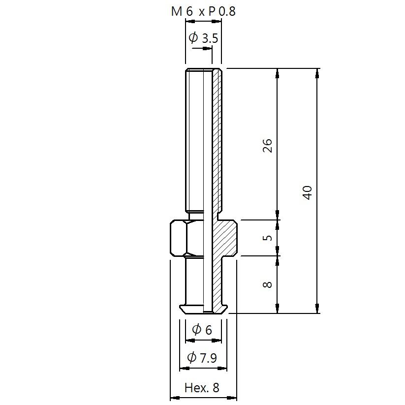 真空螺絲-外牙V型 螺牙 M6 - 盤面 7.9 - 高度 40 (A6V-151)