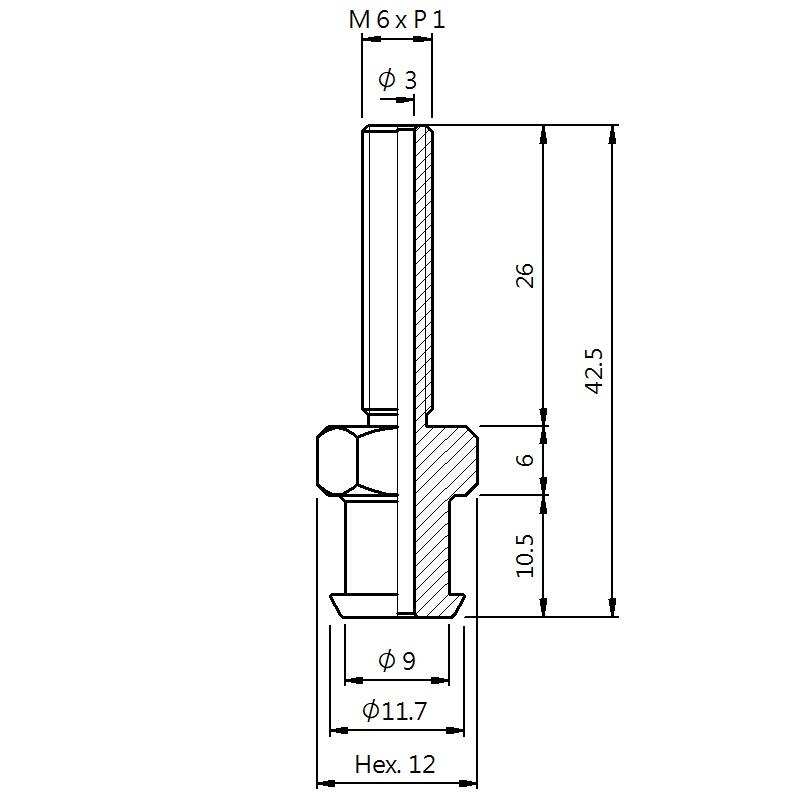 真空螺絲-外牙V型 螺牙 M6 - 盤面 11.7 - 高度 42.5 (A6V-153)