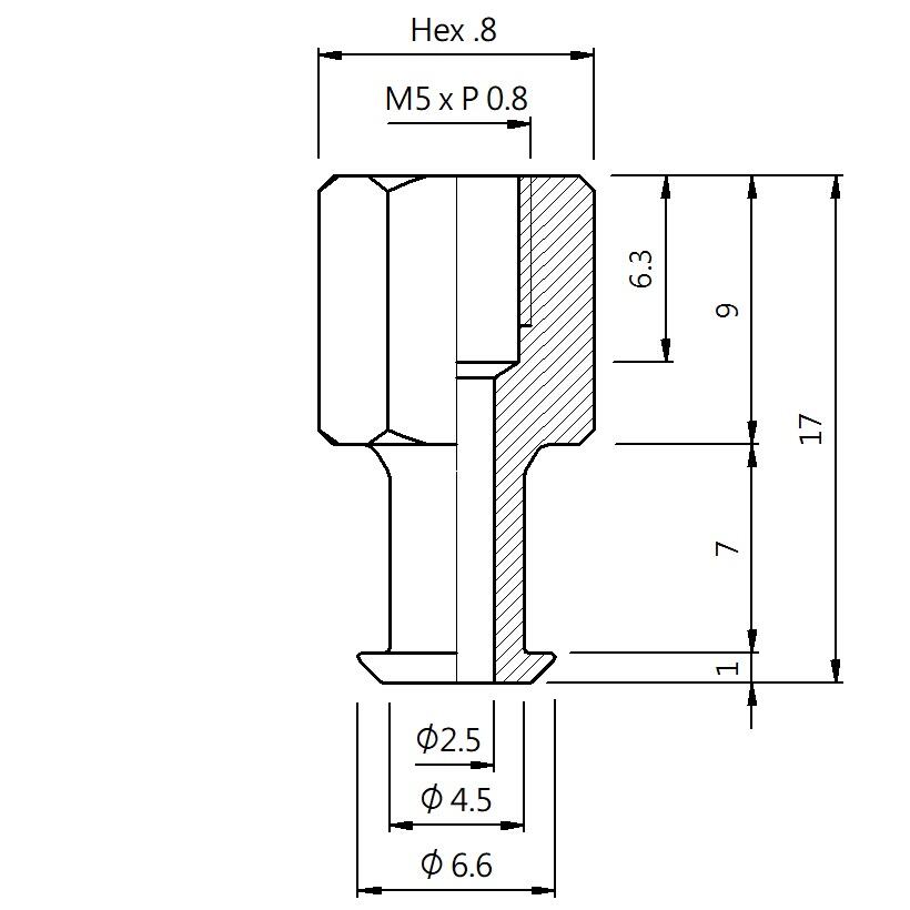 真空螺絲-內牙V型 螺牙 M5 - 盤面 6.6 - 高度 17 (B5V-150)