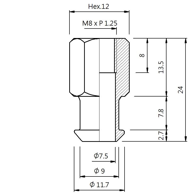 真空螺絲-內牙V型 螺牙 M8 - 盤面 11.7 - 高度 24 (B8V-154)